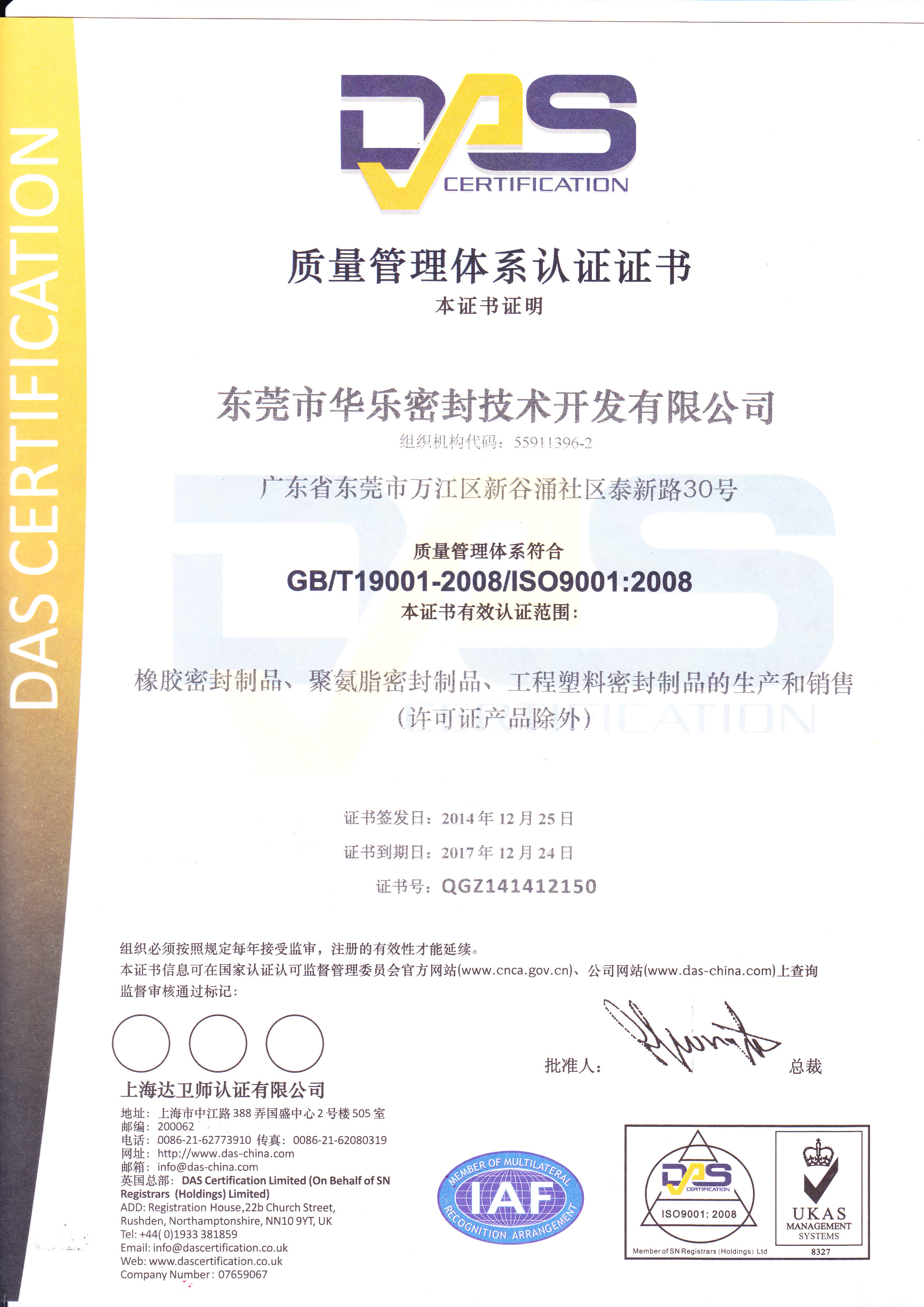 ISO9001:2008 質(zhì)量管理體系認(rèn)證證書