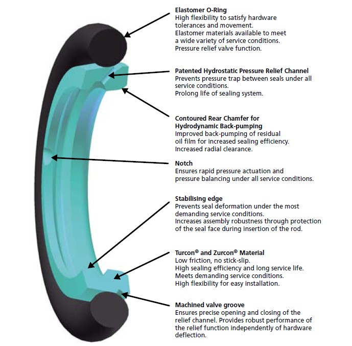 Stepseal V is a new generation primary seal designed for use in seal systems. In rod seal systems, Stepseal V is preferably used together with a secondary seal from the range of Turcon and Zurcon rod seals, or with only a double-acting Excluder or Scraper.