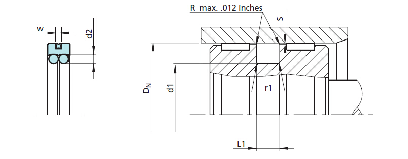 The seal profile of the Turcon ring has been redesigned on both the dynamic and static sealing surfaces. Two O—Rings are used to energize the seal instead of one.