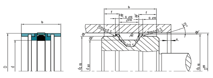 由密封環(huán)、彈性圈、二個擋圈和二個導(dǎo)向套組成,導(dǎo)向套起定位和導(dǎo)向作用,彈性圈提供預(yù)緊力并補償密封環(huán)的磨損,密封環(huán)與油缸內(nèi)孔形成配合對偶面而產(chǎn)生密封效果,適用于油缸活塞的密封。DDKK具有雙向密封效果。