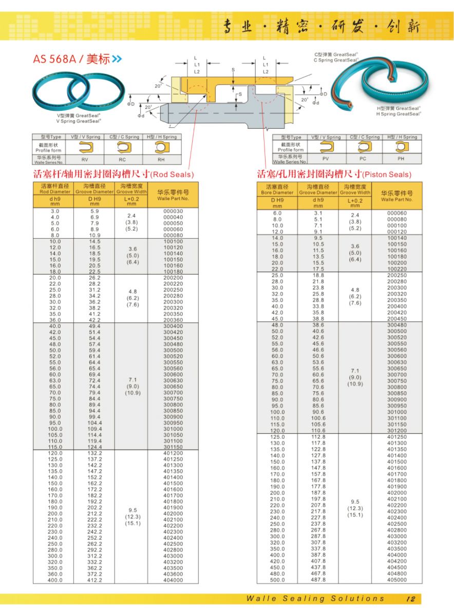 Variseal Series孔用泛塞封是一種用于內(nèi)周密封的往復(fù)運(yùn)動(dòng)用密封。這種密封可適用于惡劣工況,也可以適應(yīng)某些特殊介質(zhì)的要求。RVA密封是所有要求無爬行,耐化學(xué)制品和耐大多數(shù)介質(zhì)用途所推薦使用的密封件,例如:閥、泵、分離器、制動(dòng)器、配料裝置等。設(shè)計(jì)選用時(shí)可參考Trelleborg公司PVA系列,Parker公司的Jk系列標(biāo)準(zhǔn)。