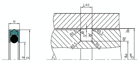 由一個密封環(huán)、兩個L型POM(直徑Ф400 mm以上用PA)支撐環(huán)和一個施力的O形圈組成活塞組合密封。支撐環(huán)起支撐和引導(dǎo)作用,以確保緊密的密封環(huán)境?;h(huán)依靠O圈的施力緊壓活塞,提供密封作用。可在礦物油,水基潤滑液、改性水基潤滑液和其他液體中使用。