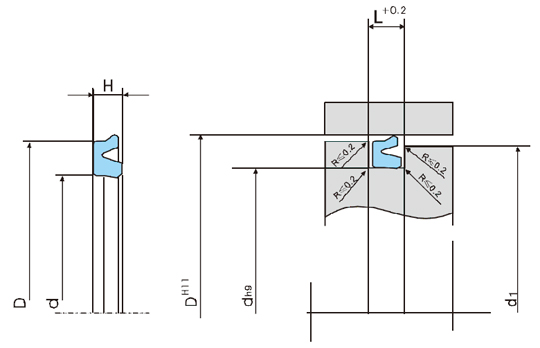 結構小,因而靜、動摩擦都很低; 適用于干燥空氣和無油空氣中,裝配時的初次潤滑對較長工作壽命起著重要作用;唇形密封結構保證著應有的功能;易于裝入密封溝槽中;還適用于有緩沖作用的氣缸。